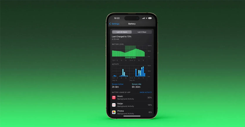 Đi tới Cài đặt > Pin để kiểm tra chi tiết về mức sử dụng pin của bạn. “24 giờ qua” là mặc định và hiển thị ứng dụng nào đang sử dụng nhiều năng lượng nhất (bao gồm Màn hình chính & Màn hình khóa và Siri).