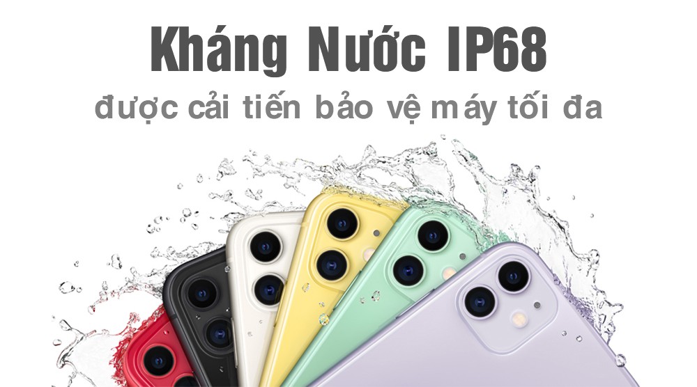 Không những vậy điện thoại iPhone 11 128GB cũ giá rẻ còn được trang bị chuẩn kháng nước đạt chuẩn IP68. Với công nghệ này có thể giúp điện thoại chịu đựng được dưới nước ở độ sâu 4m trong thời gian 30 phút. iPhone 11 128GB là một trong số ít điện thoại trên thị trường mang đến nhiều màu sắc tùy chọn nhất hiện nay gồm: Xanh lá, đỏ, vàng, trắng, tím, đen.