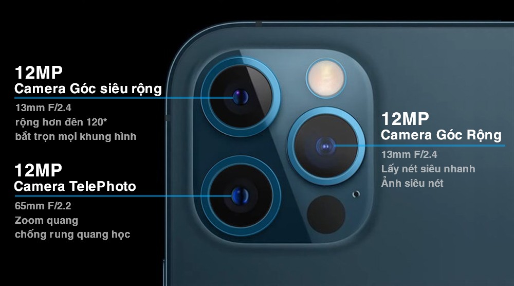 Bên cạnh đó, iPhone 12 Pro Max 256GB cũ có hàng loạt các công nghệ chụp chuyên nghiệp như Deep Fusion, Smart HDR 3, Apple ProRAW, zoom quang học 2.5x giúp đây trở thành chiếc máy chụp ảnh tốt nhất trong phân khúc.