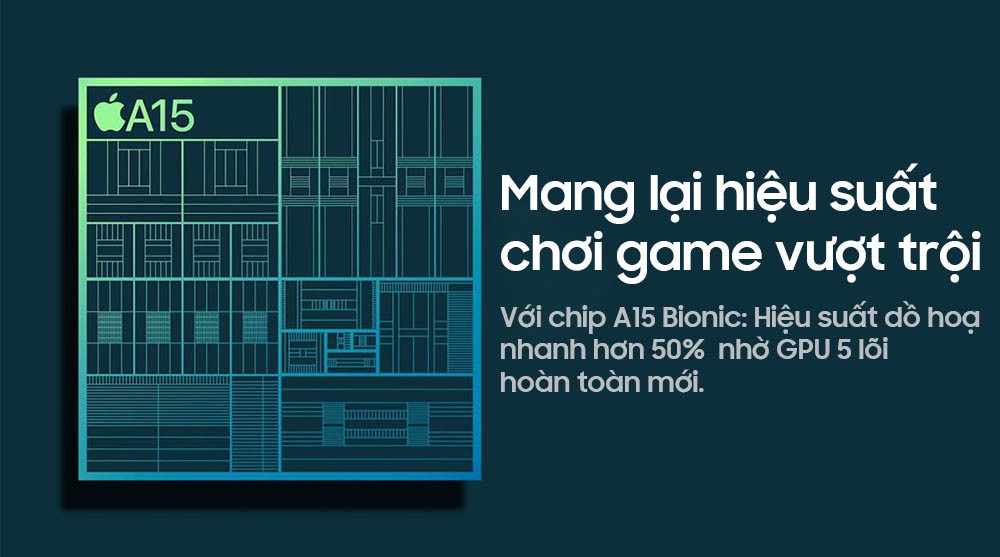 Đánh giá cấu hình iPhone 13 Pro Max 128GB cho thấy đây là flagship có hiệu năng nhanh nhất hiện nay nhờ chip xử lý A15 Bionic mới. Chipset này được sản xuất trên tiến trình 5nm+ với 6 lõi CPU (2 lõi hiệu suất cao + 4 lõi tiết kiệm năng lượng) và 5 lõi GPU. Thời điểm ra mắt, Apple từng công bố đây là chip di động nhanh nhất so với bất kỳ đối thủ nào hiện nay.