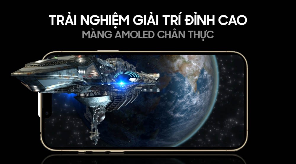 Mua iPhone 13 Pro Max 128GB giá rẻ đáp ứng tốt không gian hiển thị bởi kích thước lên đến 6.7 inch, tốc độ làm mới có khả năng thay đổi từ 10Hz đến 120Hz tùy theo nội dung hiển thị. Bên cạnh đó, tấm nền OLED cũng đi kèm với công nghệ True Tone mang đến hình ảnh sống động, màu sắc rực rỡ. Điện thoại có độ sáng tố đa lên đến 1200 nits vô cùng cấn tượng.
