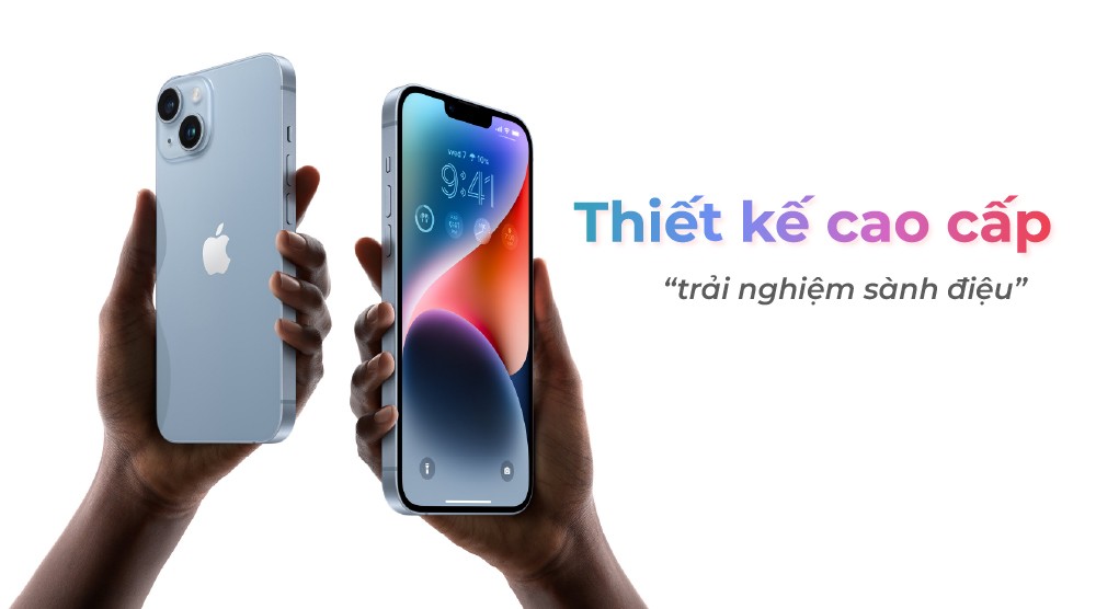 Thiết kế iPhone 14 128GB có vẻ rất giống với iPhone 13 trọng lượng 172 gram. Các chi tiết nổi bật vẫn là khung viên vát phẳng, mô-đun camera hình vuông được xếp theo đường chéo ở mặt sau và màn hình notch tai thỏ quen thuộc. Màn hình iPhone 14 128GB giá rẻ tiếp tục sử dụng tấm nền OLED Retina 6,1 inch có độ phân giải 2532 x 1170 pixel mang đến màu sắc rực rỡ, độ chi tiết cao.