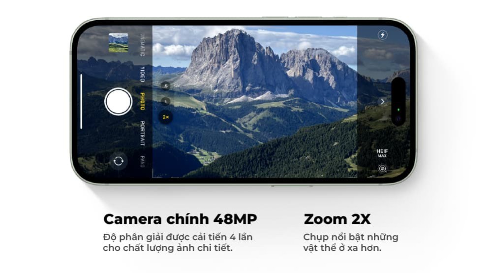 iPhone 15 Plus mới được trang bị camera chính 48MP hoàn toàn mới. Nó hỗ trợ cảm biến dịch chuyển OIS (Bộ ổn định hình ảnh quang học), khẩu độ f/1.6 và tiêu cự 26mm. Cảm biến chính được hỗ trợ bởi ống kính tele 12MP với khẩu độ f/1.6, tiêu cự lên tới 52mm và hỗ trợ zoom 2X, tính năng đầu tiên dành cho các mẫu iPhone thông thường cho đến nay.