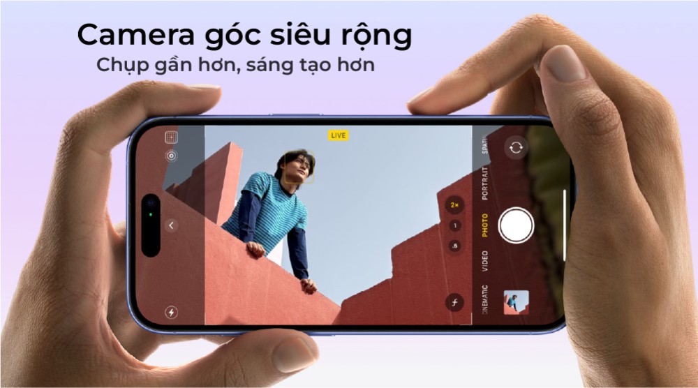Hệ thống camera iPhone 16 Plus 128GB VN/A vẫn đi kèm với hai ống kính bao gồm cảm biến chính 48MP và cảm biến siêu rộng 12MP. Trong khi đó, camera selfie trên máy có độ phân giải 12MP. Nâng cấp lớn nhất trên điện thoại liên quan đến ống kính siêu rộng, hiện có khẩu độ f/2.2 rộng hơn cho phép thu được nhiều ánh sáng hơn so với thế hệ tiền nhiệm.