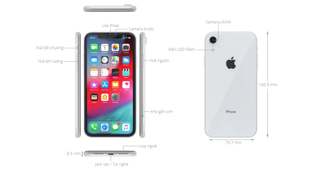 Tổng thể điện thoại khá nhỏ gọn với trọng lượng chỉ 194 gram với độ mỏng 8.3 mm, các góc cạnh được bo cong mềm mại giúp người dùng cầm nắm tốt và dễ dàng thao tác bằng 1 tay. Độ bền trên điện thoại iPhone Xr 128GB cũng được đánh giá cao khi Apple đã tích hợp chuẩn chống nước, bụi đạt chuẩn IP67 giúp bảo vệ thiết bị của bạn tốt hơn trước môi trường chất lỏng.
